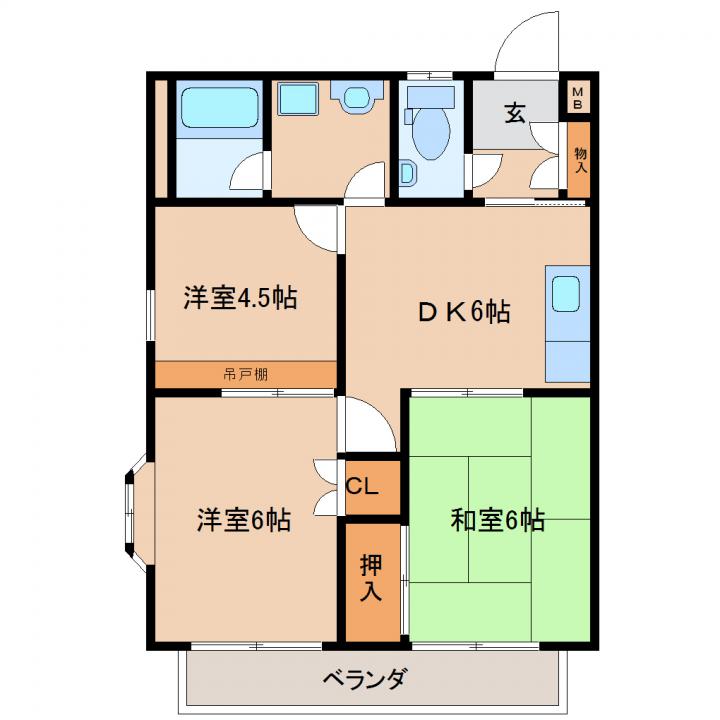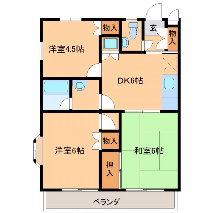 | 間取り詳細 | DK6帖 洋室6帖 和室6帖 洋室4.5帖 |
